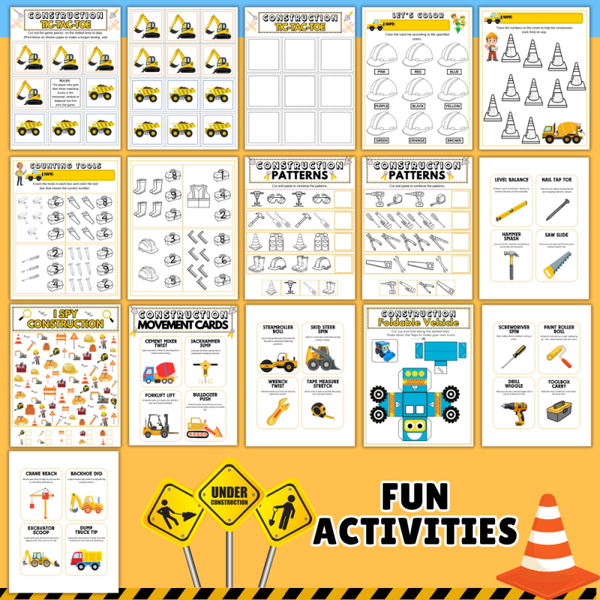 Bring the excitement of the job site into your home or classroom with this all-in-one digital activity bundle. From fine-motor tracing to whole-body movement games, each page is designed to engage learners aged 3–7 in counting, pattern recognition, literacy prompts, and creative play—no prep required.