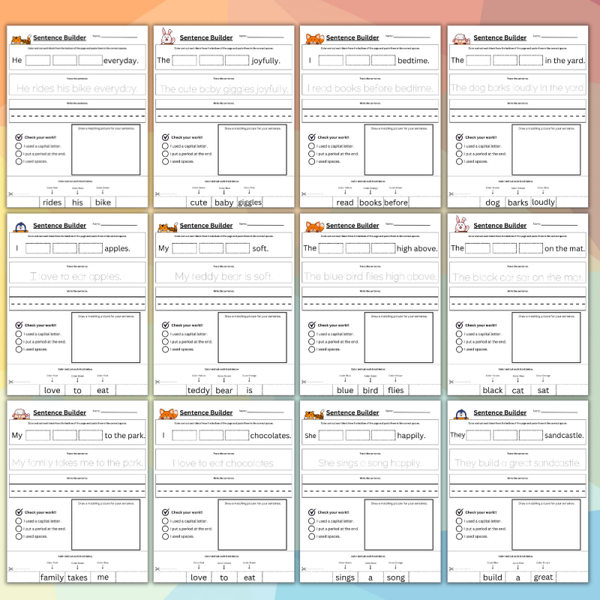 ✏️ Sentence Builder Worksheets – Printable Early Writing & Literacy Practice