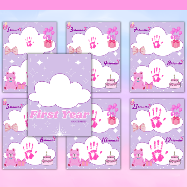 Perfect for baby scrapbooks, nursery décor, or early learning portfolios, this digital download makes it easy to celebrate each monthly milestone. Simply print at home, add your baby’s handprint using safe, non-toxic ink or paint, and watch their growth unfold month by month.