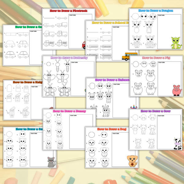 Unlock your child’s creativity with this easy, step‑by‑step “How to Draw” printable pack! Designed for young artists in preschool, kindergarten, and early primary years, these guided drawing sheets make it simple (and exciting) for kids to create their own adorable animals, magical creatures, and cool vehicles.